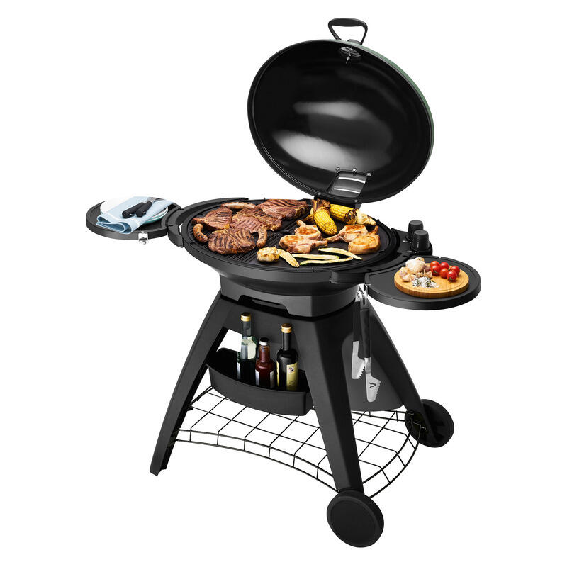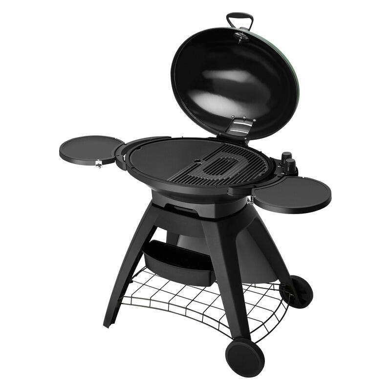 The Beefeater Bigg Bugg 2 Burner BBQ with Trolley in striking green is built for serious outdoor cooking, combining power, style, and convenience in one sleek package. With a generous total output of 32 megajoules, its twin burners deliver consistent heat across an extra large cooking surface, perfect for feeding a crowd or preparing multiple dishes at once. The versatile plate grill lets you sear steaks, flip burgers, or slow-cook vegetables with ease, while the integrated thermometer ensures precise temperature control every time. Thanks to the easy-clean vitreous enamel coated roasting hood, clean-up is refreshingly simple, and the spring assist feature makes lifting the hood feel effortless. The integrated Quartz Start Ignition means quick, reliable lighting without fuss, so you're ready to cook in seconds. Mounted on a sturdy trolley, it?s easy to manoeuvre around the patio or backyard, offering both stability and flexibility. Whether you're hosting a weekend barbecue or cooking a midweek family meal, the Bigg Bugg delivers reliable performance, stylish design, and the kind of versatility that makes outdoor cooking a joy.