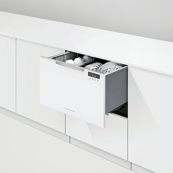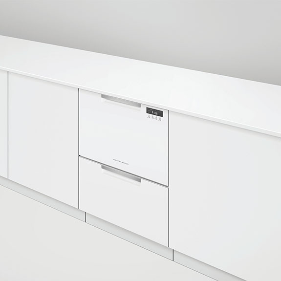 Enjoy the versatility of running two individual washes at once with Fisher & Paykels 60cm Double Dishdrawer. Perfect for growing families and home chefs, this Double Dishdrawer comes jam-packed with features to make washing up easy. With 14 place settings and 15 wash programs such as Delicate, Eco, Heavy and Extra Dry, this Double Dishdrawer does not disappoint. Apply extra power to your wash with Quick wash, Sanitise and Extra Dry options, plus with flexible racking, each drawer can be adjusted to fit bigger dishes. Take control of your wash with the digital display and push buttons and with quiet operation, confidently run a wash at any time of the day. In a classic design in White, this Fisher & Paykel 60cm Double Dishdrawer is as gorgeous as it is functional.