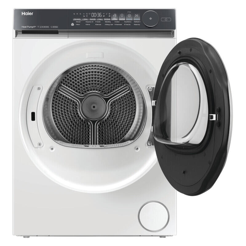 The Haier 9kg 500 Series Heat Pump Dryer in white offers an efficient and fabric-conscious approach to drying, making it a reliable addition to any modern laundry. With its generous 9kg capacity, it easily manages everyday loads, helping streamline household routines. The advanced heat pump technology dries clothes at lower temperatures, providing gentle care while achieving an impressive 9-star energy rating for reduced energy use. Steam Refresh is ideal for reviving lightly worn garments, while the steam function also helps reduce wrinkles, making ironing less of a chore. Featuring 14 specialist cycles, it caters to a wide range of fabrics, including a dedicated setting to safely dry hand-wash woollens, preserving their softness and shape. Designed with both performance and convenience in mind, this Haier dryer delivers consistent results while maintaining the quality of garments, all within a clean, classic white finish that suits any laundry space.
