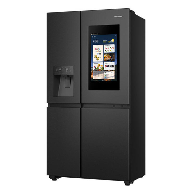 The Hisense PureFlat Eclipse Side by Side Refrigerator ? Black combines sleek design with advanced features for the modern kitchen. With its striking PureFlat finish, it delivers a contemporary look while offering generous storage. The built-in non-plumbed auto ice maker provides a steady supply of ice without complicated installation, while the integrated 21-inch Smart Screen gives you easy access to recipes, schedules, and entertainment. Inside, the antibacterial liner helps maintain a hygienic environment, keeping food fresher for longer. Smart connectivity through ConnectLife allows you to monitor and control the fridge from your smartphone, adding convenience to everyday life. A dedicated wine rack ensures your favourite bottles are perfectly stored and ready to serve. Stylish, practical, and feature-rich, this Hisense refrigerator is designed to elevate both function and design in any home.