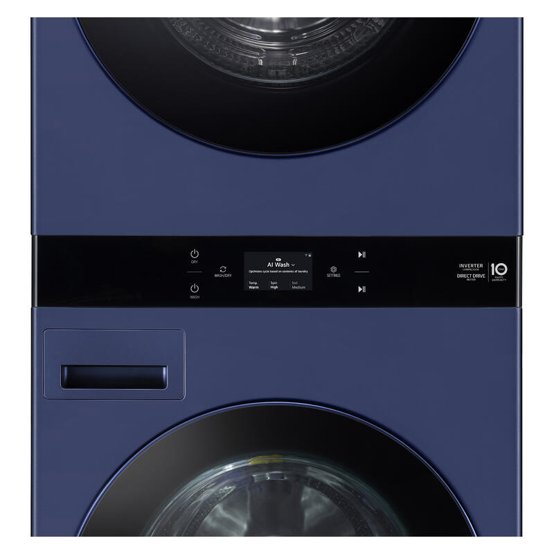 The LG 19kg + 10kg WashTower All-In-One Washer Dryer Combo makes light work of heavy laundry days. Featuring a generous 19kg wash and 10kg dry capacity, it?s designed to handle more in fewer loads, saving time and effort for busy households. The TurboClean 360 wash cycle gets clothes thoroughly clean in just 39 minutes, and ezDispense technology takes care of detergent dosing automatically. With 6 Motion Direct Drive and AI-powered clothing care, it gently but effectively cleans all fabric types. Allergy Care is ideal for sensitive skin, while the dual inverter heat pump delivers efficient drying with less energy. The auto-cleaning condenser ensures long-term performance, and with the LG ThinQ app, you can control and monitor cycles from your smartphone. Finished in a bold blue, this unit brings smart technology and sophisticated design into one streamlined package.