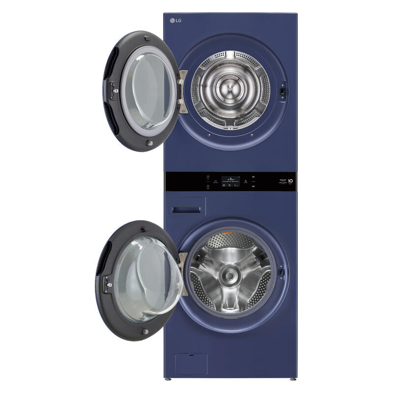 The LG 19kg/10kg WashTower All-In-One Stacked Washer Dryer Combo in Blue combines powerful performance with intelligent design for effortless laundry care. Featuring AI technology, it automatically detects fabric type and load size to optimise washing and drying cycles, ensuring gentle yet effective cleaning. The TurboClean 360 function delivers a thorough wash in just 39 minutes, while the 6 Motion Direct Drive technology replicates hand-washing movements for superior fabric care. EzDispense precisely measures and releases the perfect amount of detergent, while the Dual Inverter Heat Pump provides efficient drying with an impressive 10-star energy rating. The Auto Cleaning Condenser keeps the dryer running at peak performance, and Allergy Care removes up to 99.9% of common allergens for a cleaner, healthier home. With its 4.5-star energy-rated washer and bold blue finish, this WashTower brings style, innovation, and sustainability to modern laundry spaces.