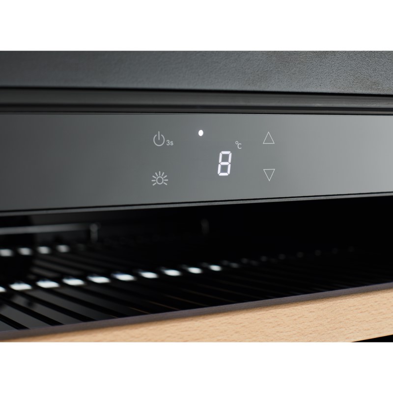 Elevate your entertaining experience with the sophisticated Vintec 100 Bottle Beverage Centre, boasting a stylish black glass exterior. This beverage center is the ideal choice for discerning hosts looking to store their collection of beers, champagnes, and white wines. Its generous capacity accommodates up to 100 bottles of beer, while three metal shelves with wooden fronts provide a touch of elegance. Take command of your wine's climate with the digital temperature control system, allowing you to set the temperature between 2 and 10 degrees Celsius. The reversible glass door is triple glazed and equipped with an anti-UV coating, shielding your precious wines from harmful light exposure. For your peace of mind, this unit includes a lock and key, enhancing security for your cherished beverages.